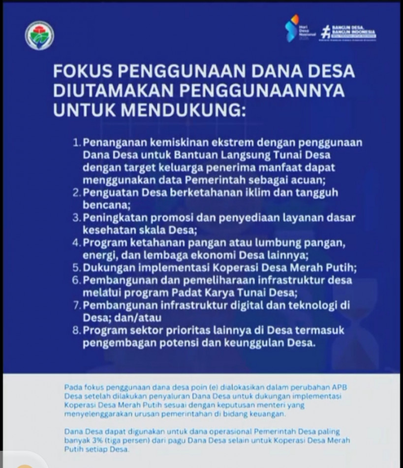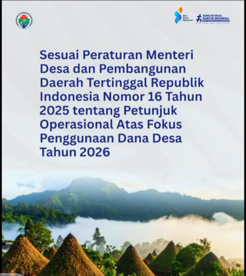 Berikut adalah fokus penggunaan dana desa tahun 2026 sesuai Permendes PDTT nomor 16 tahun 2025.