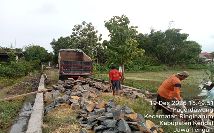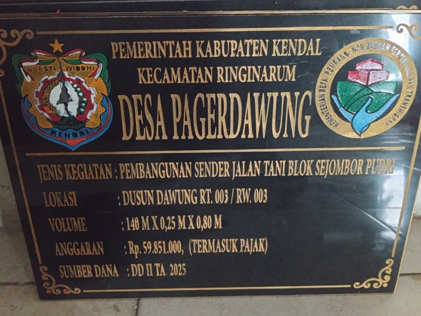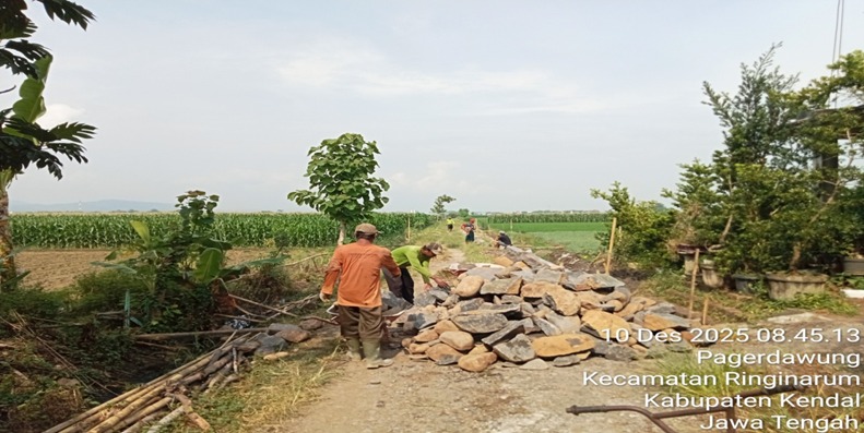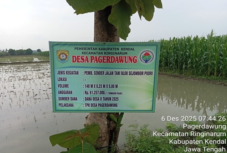 Pembangunan sender jalan tani Sejombor Pudri sepanjanng 140 m x 0,25 m x 0,80 m. (70 m kanan, 70 m kiri)