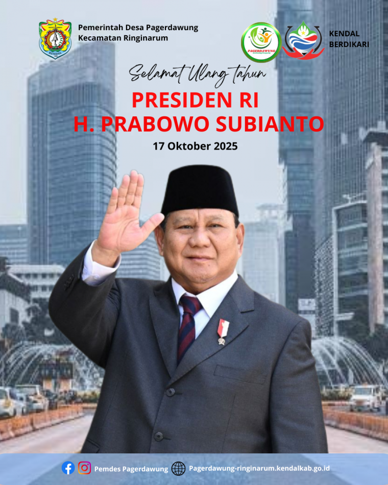 Pemerintah Desa Pagerdawung mengucapkan Selamat Ulang Tahun ke-74 Presiden Republik Indonesia, H. Prabowo Subianto. 17 Oktober 2025.
