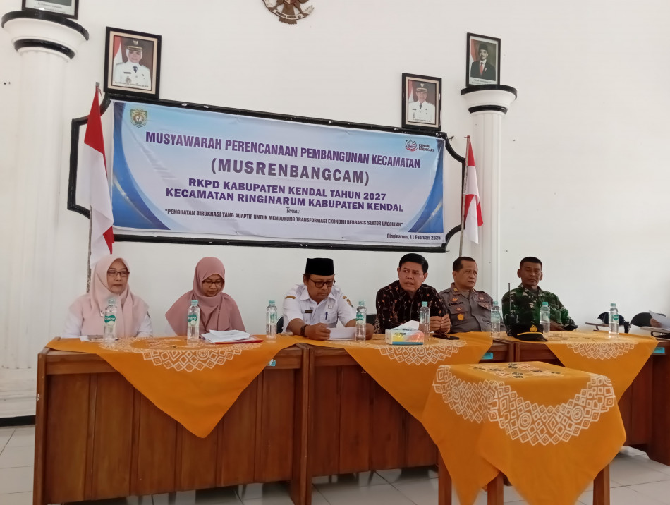 Telah dilaksanakan MUSRENBANGCAM RINGINARUM yang dihadiri Perwakilan DPRD KAB Kendal dapil V, forkopimcam RINGINARUM, OPD terkait, Kepala Desa, Sekretaris Desa, Ketua BPD, dan ketua TP. PKK se Kecamatan Ringinarum.
