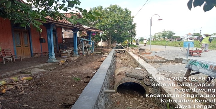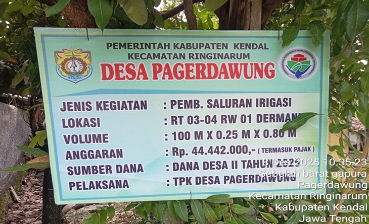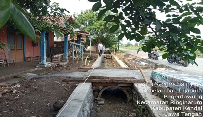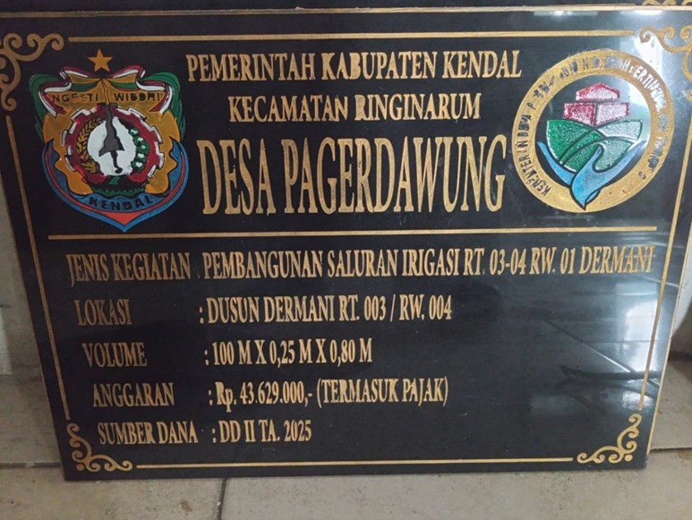 Pembangunan sender irigasi RT 003-004 RW 001 Dusun Dermani sepanjang 100 m x 0,25 m x 0,80 m.