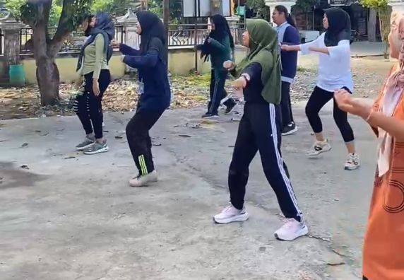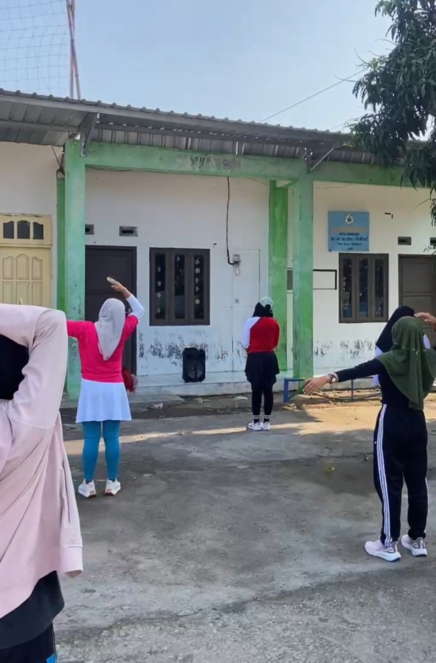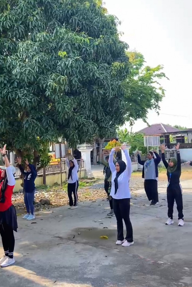 Senam sehat bersama giat 13 UNNES Desa Pagerdawung dan kader kesehatan dan ibu-ibu.