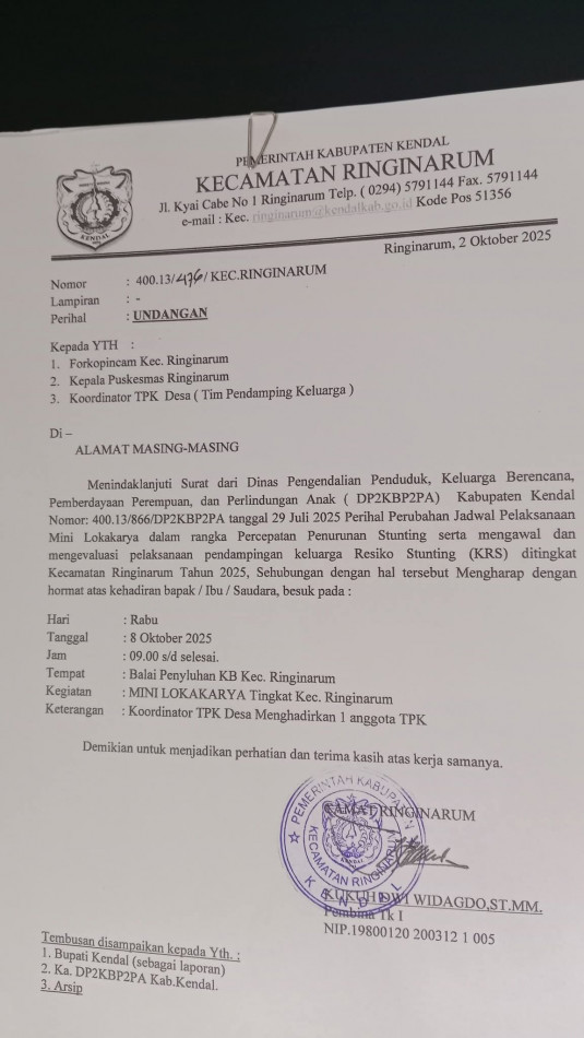 Rabu, 8 Oktober 2025 mini lokakarya tingkat kecamatan Ringinarum di Balai PLKB Kecamatan Ringinarum dalam rangka penurunan stunting fan pendampingan keluarga resiko stunting.