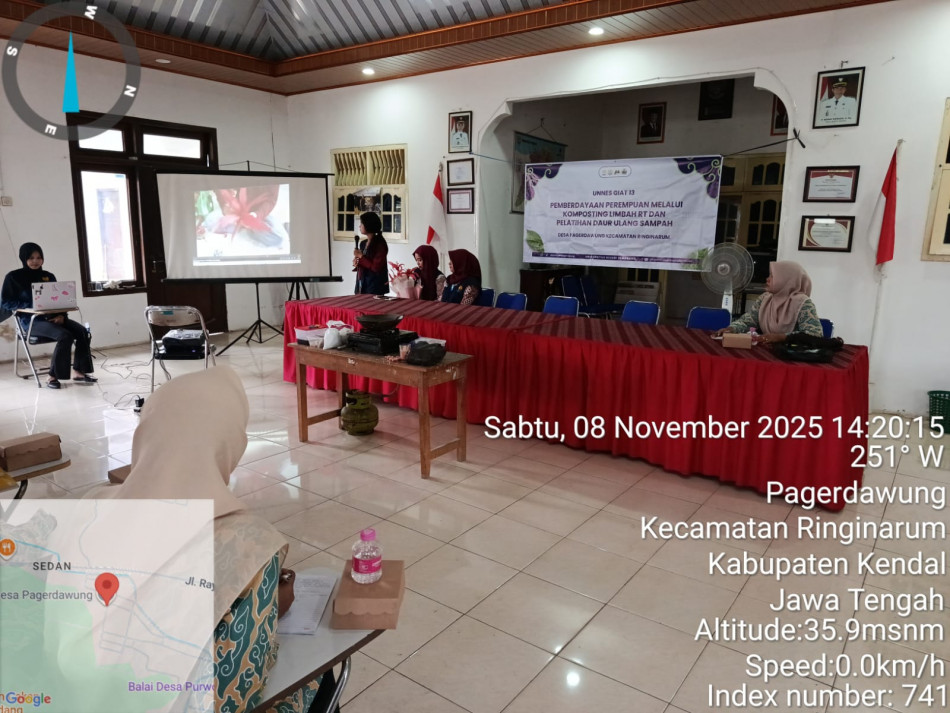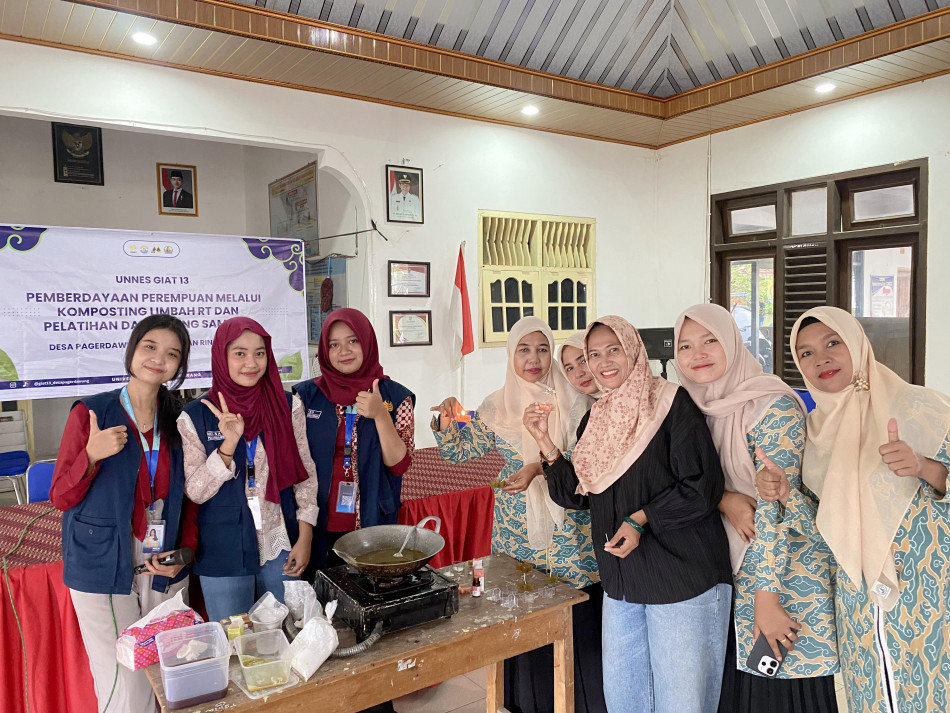 Sabtu, 8 November 2025. Pemberdayaan perempuan dengan pelatihan pembuatan lilin aroma terapi dan kerajinan dari kulit jagung bersama Ibu PKK Desa Pagerdawung dan giat 13 UNNES.