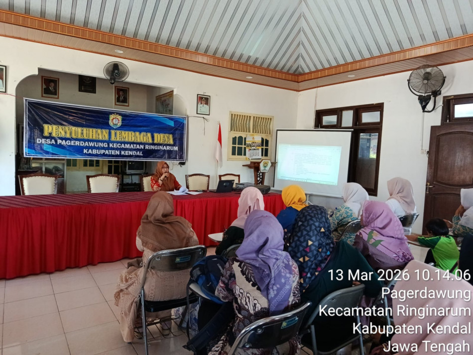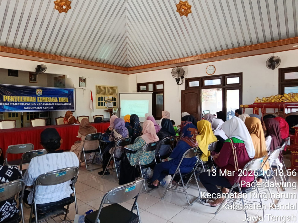Pemerintah Desa Pagerdawung melaksanakan kegiatan penyuluhan kelembagaan desa. Pada Kesempatan ini turut hadir Ketua BPD beserta anggota, PKK Desa, Kader Posyandu, LPMD, dan Karang taruna Desa Pagerdawung. Dengan narasumber dari Ibu Ari Ristiani, S.Sos, M.M selaku Sekretaris Kecamatan Ringinarum. Materi berfokus pada transformasi Posyandu 6 SPM, tupoksi masing-masing lembaga dalam mengawal dan membersamai pembangunan desa.
