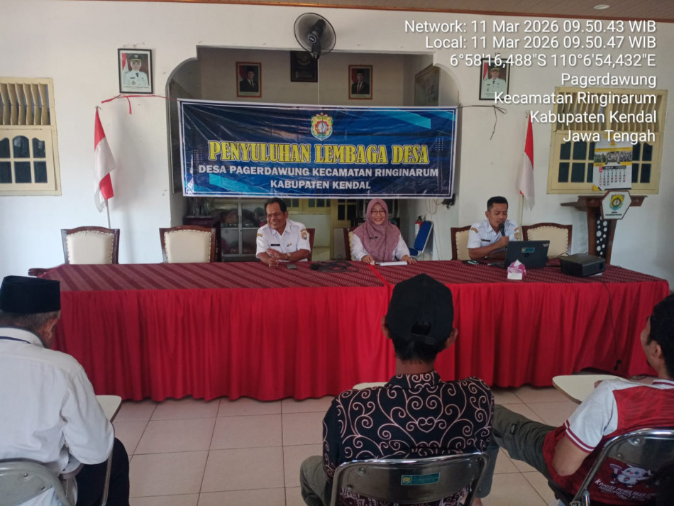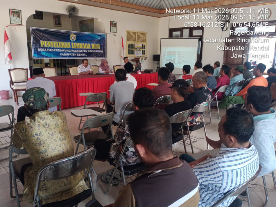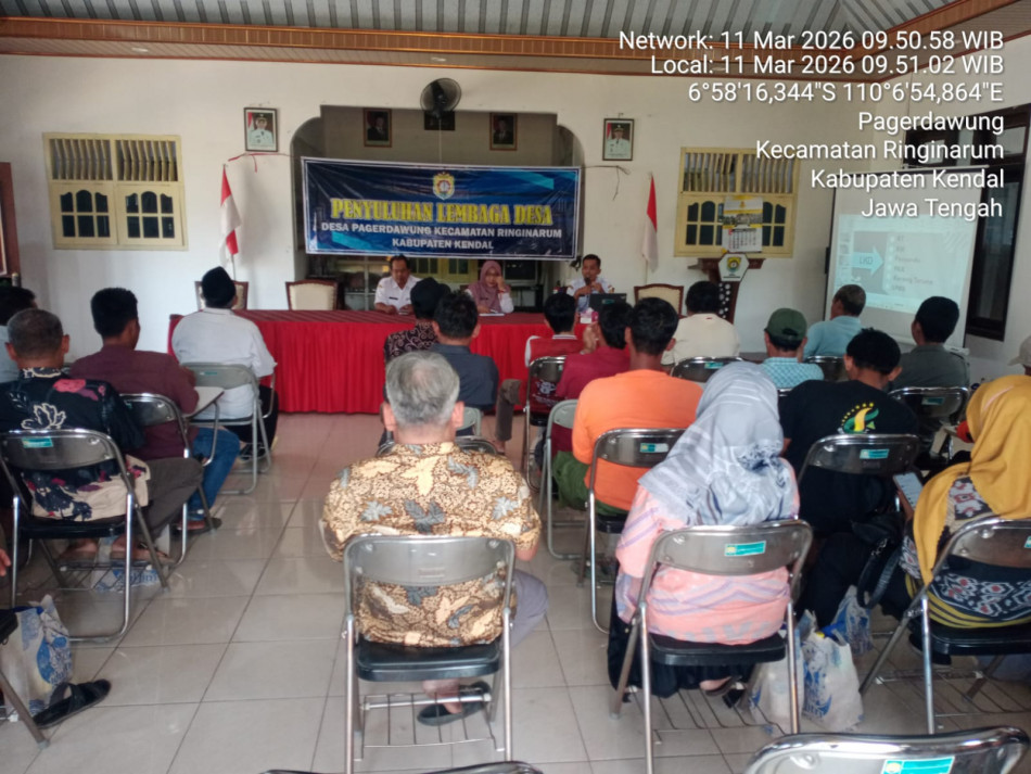Pemerintah Desa Pagerdawung melaksanakan kegiatan penyuluhan kelembagaan desa. Pada Rabu, 11 Maret 2026 yang pada Kesempatan ini turut hadir Ketua RT/RW se Desa Pagerdawung, LPMD, dan Linmas Desa Pagerdawung. Dengan narasumber dari Ibu Ari Ristiani, S.Sos, M.M selaku Sekretaris Kecamatan Ringinarum. Materi berfokus pada peran masing-masing dalam PAW Kepala Desa, tupoksi masing-masing lembaga dalam mengawal dan membersamai pembangunan desa.