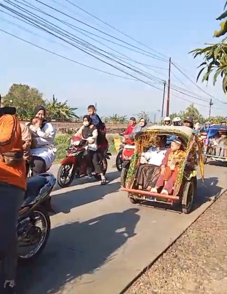 Kirab peserta khitan massal Desa Pagerdawung tahun 2025. Meriah