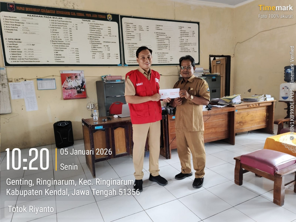 Pemerintah Desa Pagerdawung menyalurkan bantuan tambahan dari PMI KABUPATEN KENDAL berupa uang tunai 1.000.000 yang dibagi kepada 5 penerima terdampak paling parah.
