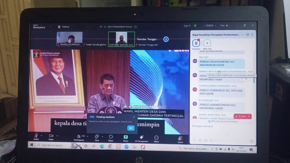 Senin, 20 Oktober 2025 Pemerintah Desa Pagerdawung mengikuti kegiatan zoom meeting POSBANKUM (Pos Bantuan Hukum).