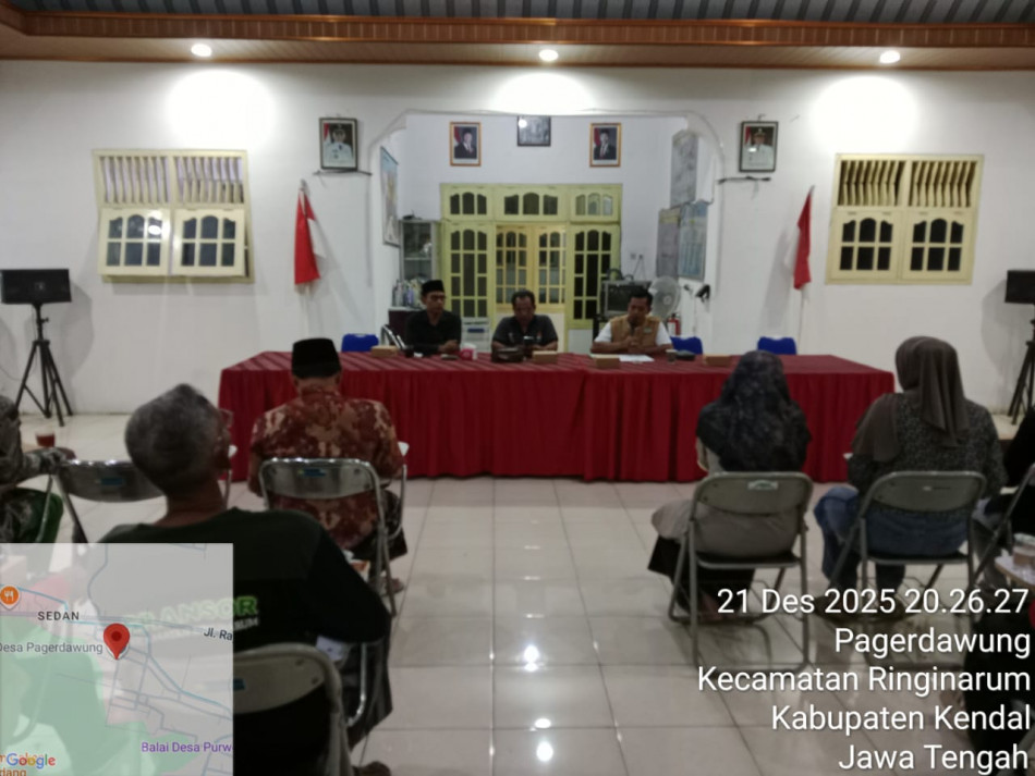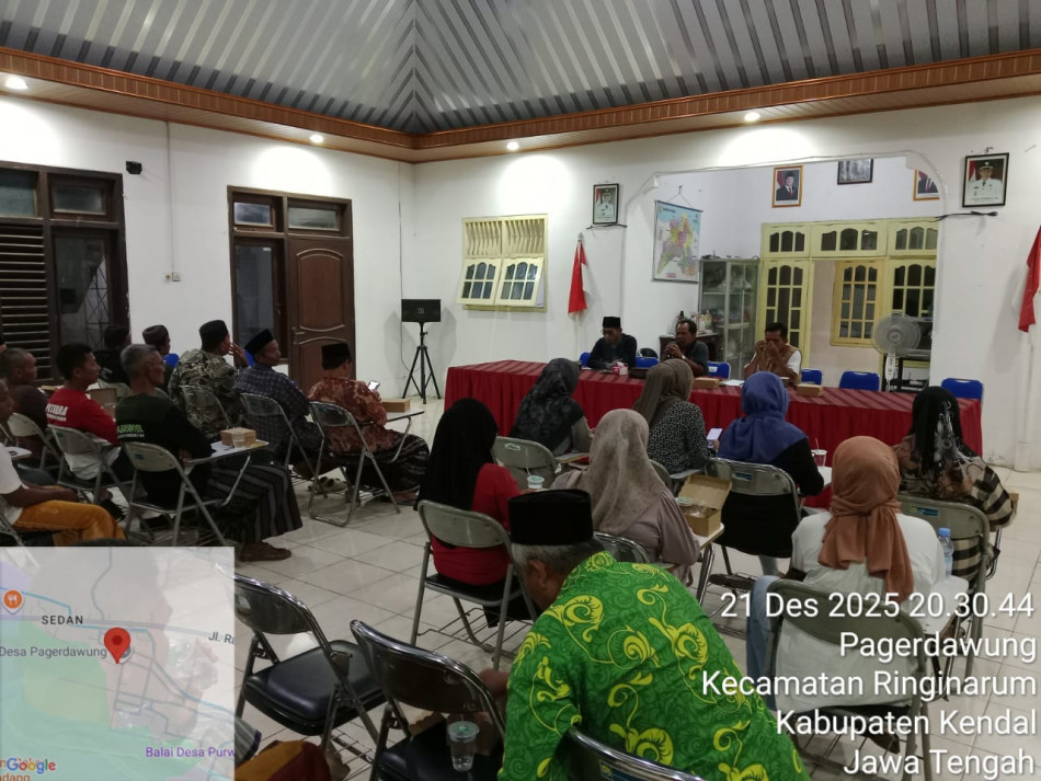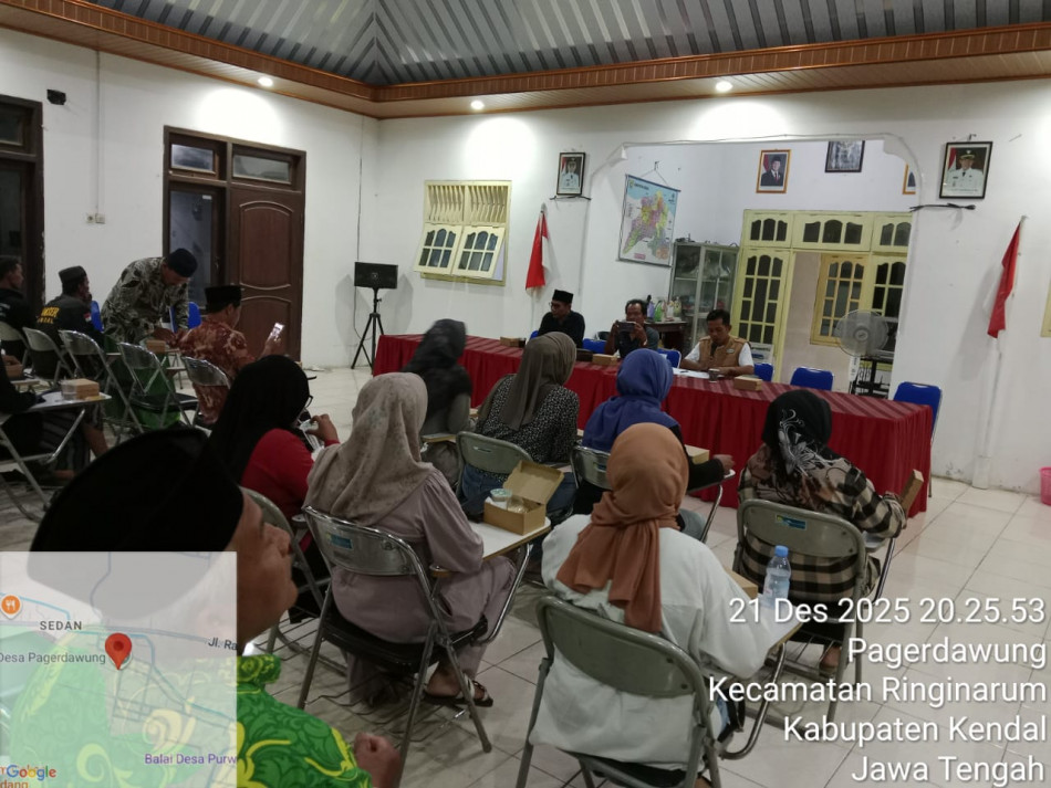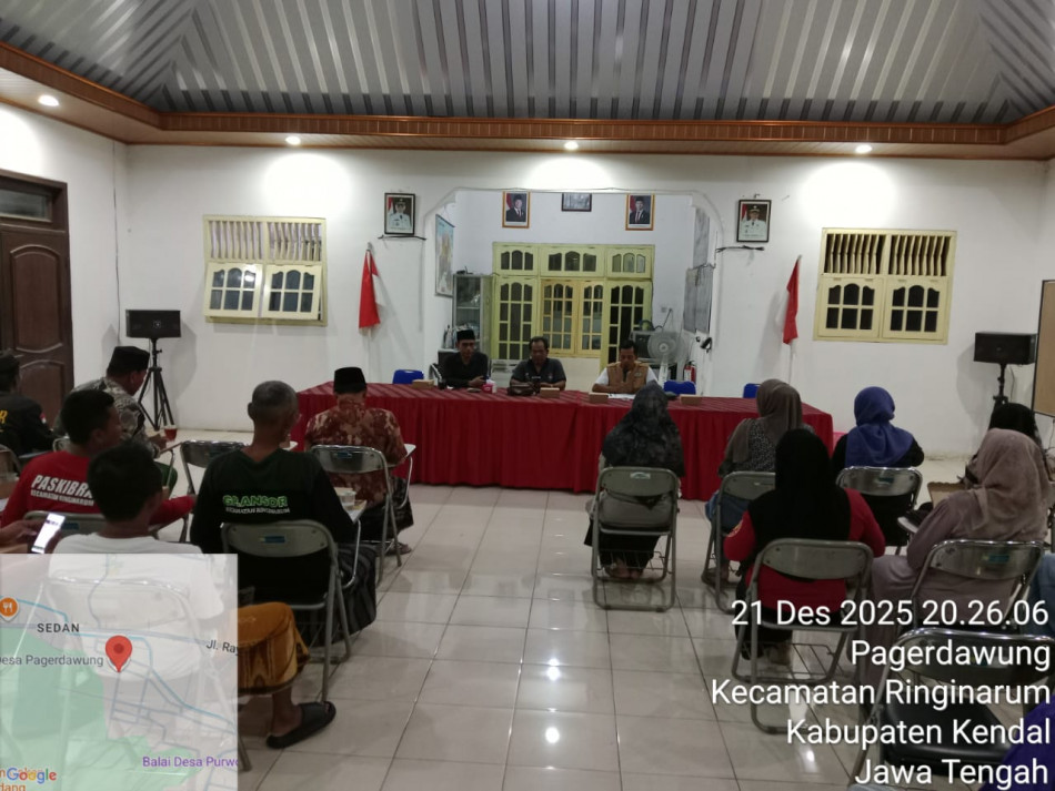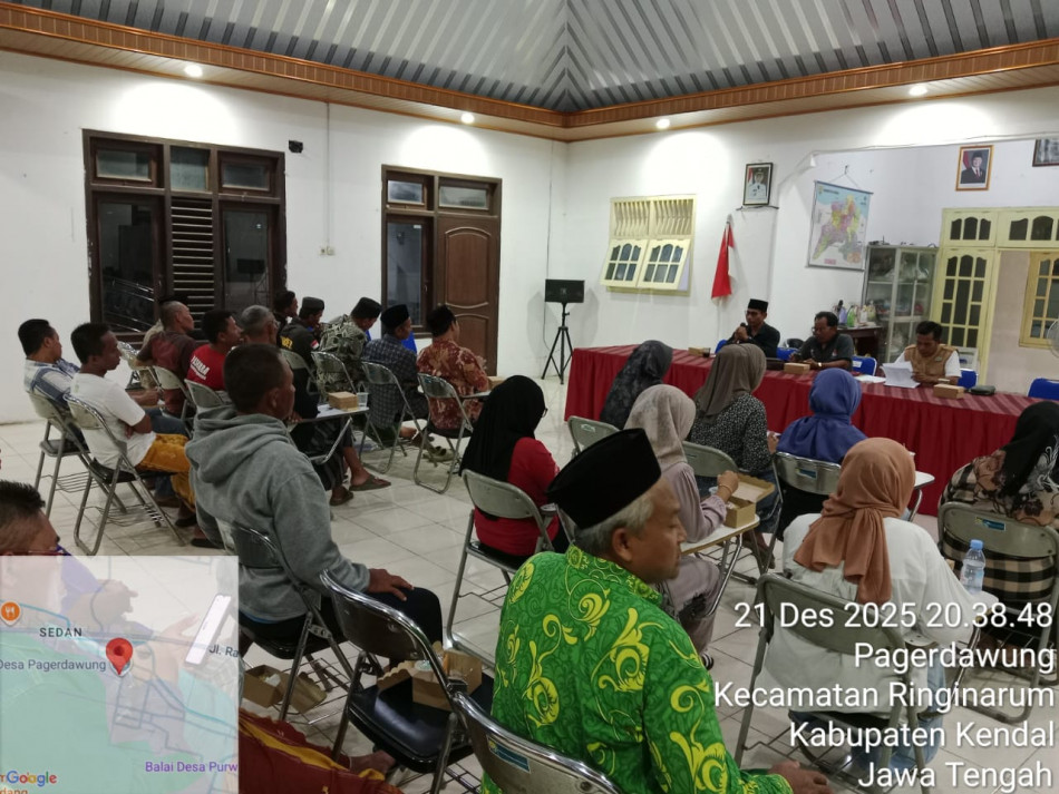 Pemerintah Desa bersama BPD dan lembaga desa melaksanakan rapat guna menentukan pembagian bantuan untuk korban terdampak angin puting beliung. Bantuan dari pemerintah Kabupaten Kendal dan Pemerintah Desa Pagerdawung.