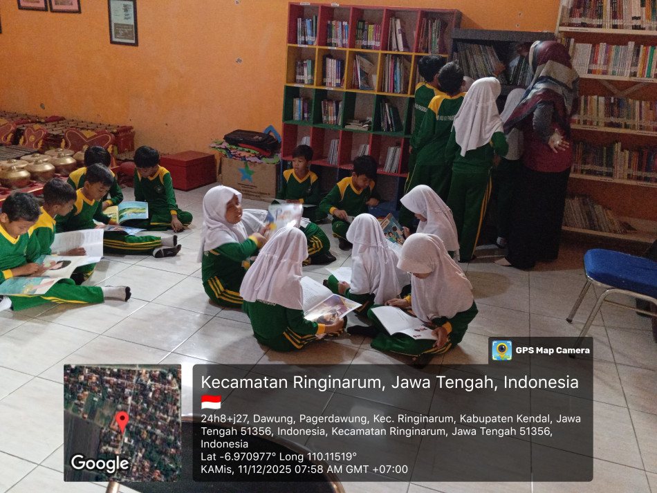 Kunjungan Siswa-siswi MI NU 63 Desa Pagerdawung di Perpustakaan Desa hari Kamis, 11 November 2025.