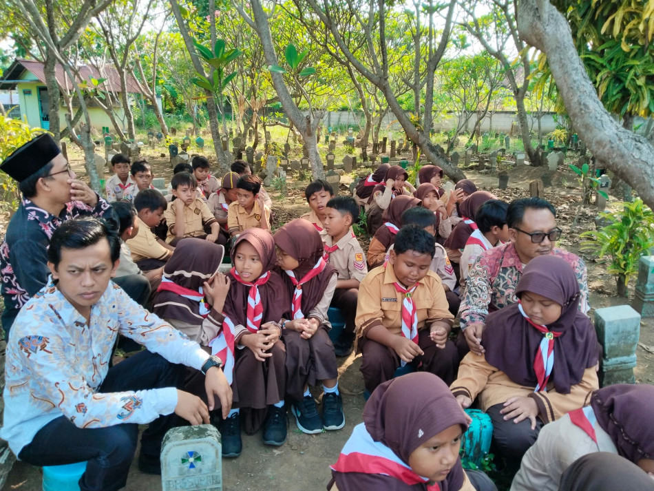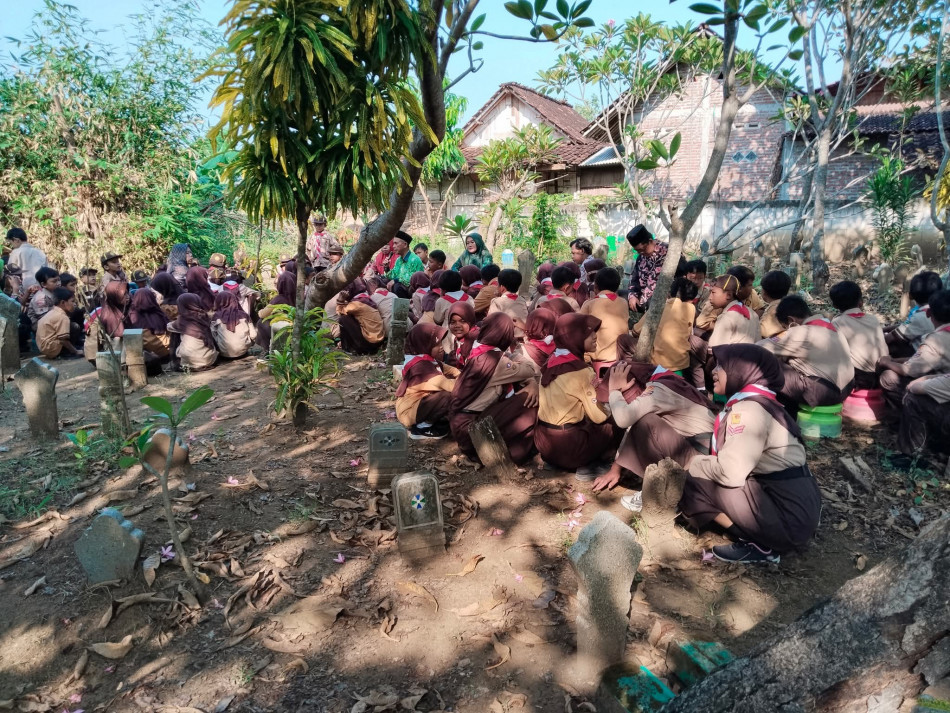 Jajaran guru dan siswa MI NU melaksanakan ziarah kubur ke makam para pendiri MI NU 63 Desa Pagerdawung. Kegiatan ini dalam rangka menyambut hari santri tahun 2025.