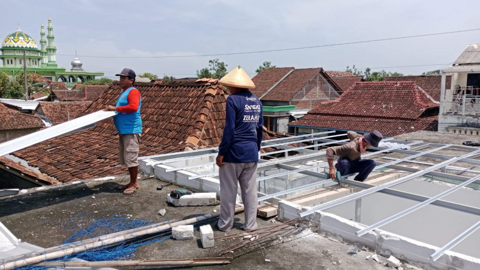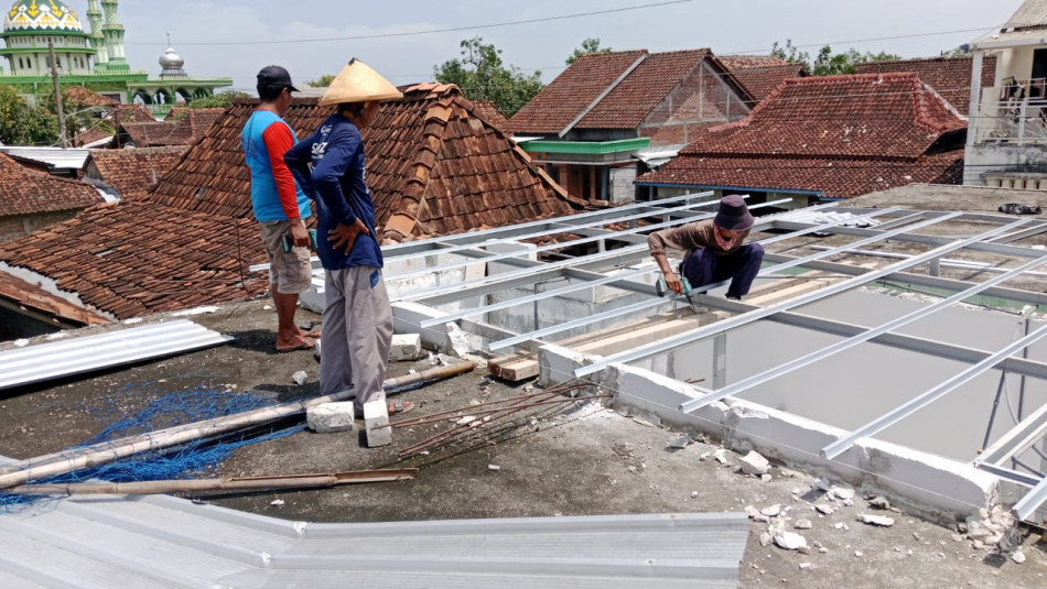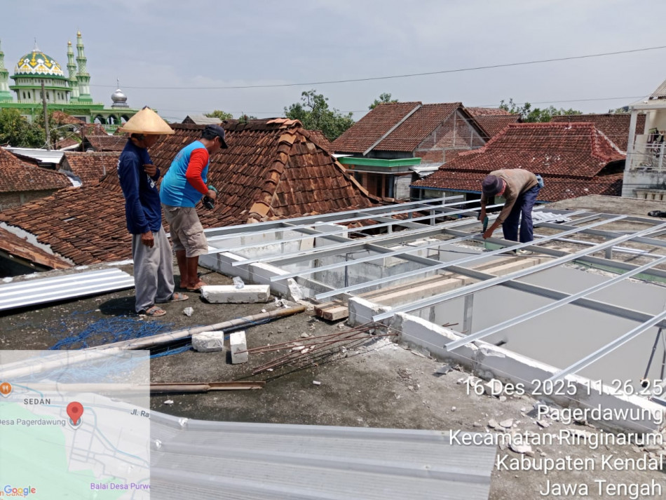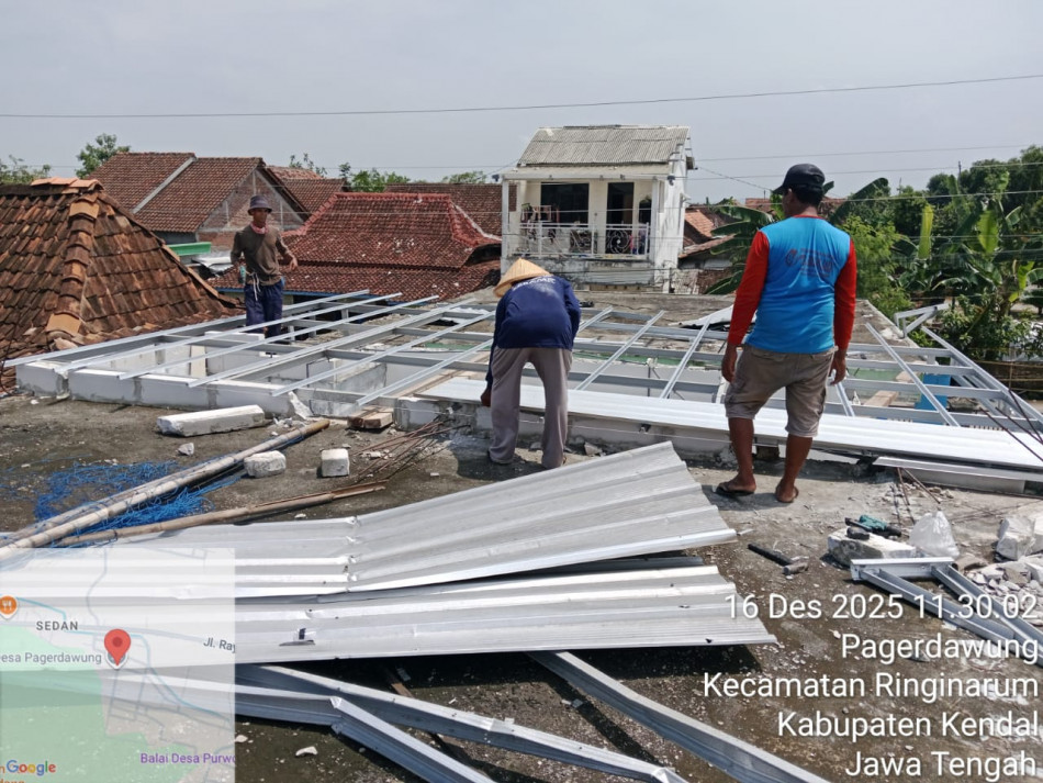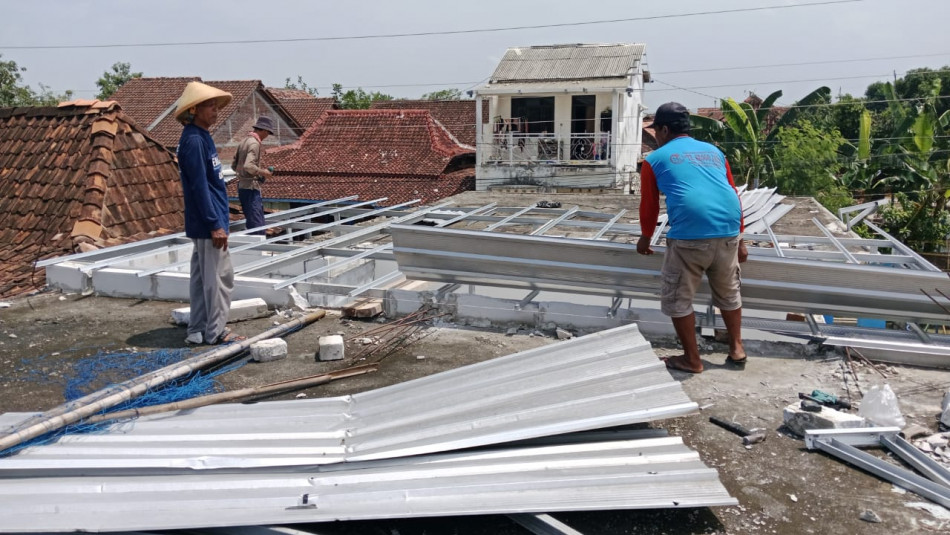 Pemerintah Desa Pagerdawung memperbaiki atap gedung PKD yang juga menjadi salah satu terdampak bencana puting beliung.